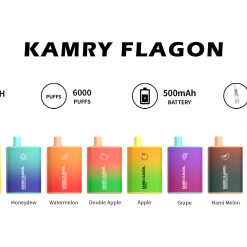 the Kamry Flagon is a nice designed disposable vape, it comes with flagon shape with rechargeable 500mah battery, 5% nicotine 12ml eliquid supports 6000 puffs max.