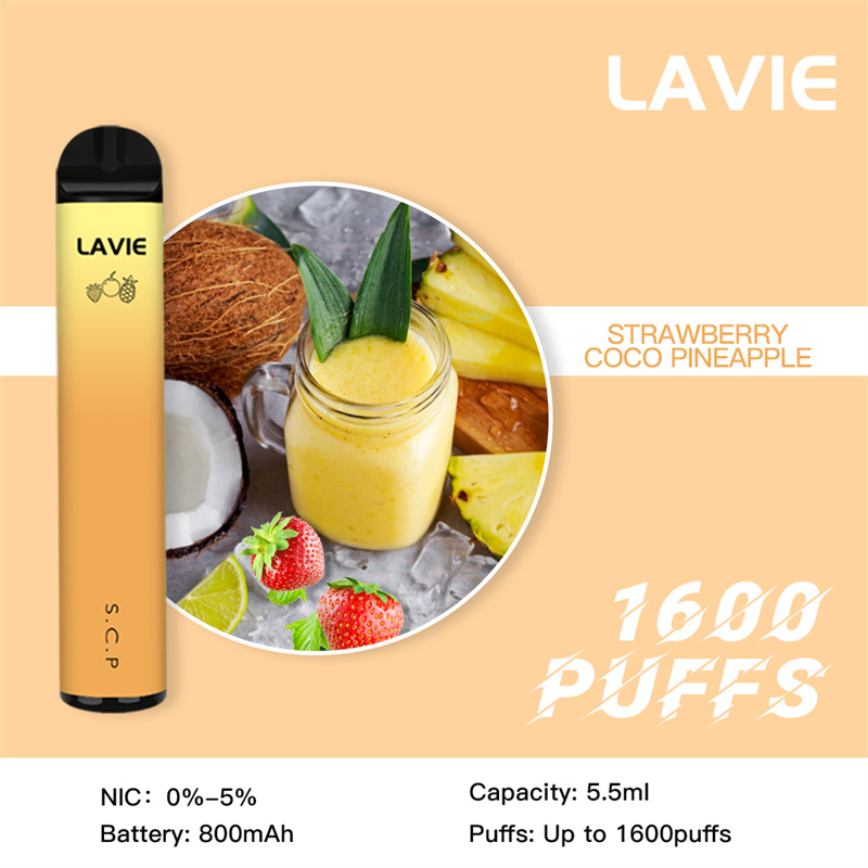 Lavie Bar 1600 är en snyggt designad engångsvape med ett inbyggt 800 mAh högkapacitetsbatteri och 5,3 ml e-juiceoljekapacitet för 1600 puffar med en len smak och en söt, kompakt storlek som är lätt att bära och ger en mer utsökt vapingupplevelse.